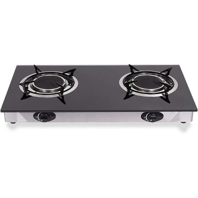 Barton 2 Burner Glass Cooktop Auto Ignition Stove Infrared Flame Ceramic Head With Regulator, Black