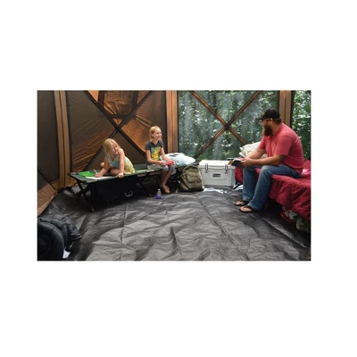 This adaptable camper comes equipped with a heavy-duty removable floor and built-in wind panels, making this tent ideal for overnight excursions, bug-free sporting events, backyard barbeques, or picnics. The 63.5 square feet of area with ample amounts of sleeping space fit over a standard-sized picnic table. This camper is spacious enough to fit up to 8 people inside. The tent includes 7 deluxe tent stakes, 6 tie down ropes to keep secure, 11-millimeter fiberglass poles, and an oversized carry bag for easy repacking. With a pop-up canopy design, this shelter tent takes only 1 person and very little time to set up. The floor is just as easy to assemble: you can install and remove the bottom with easy-to-use, quick position toggles. The screen windows feature no-see-um mesh and an extra-wide skirt keeps bugs out, while the water-resistant roof with taped seams stands up to the rain.