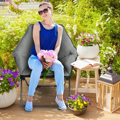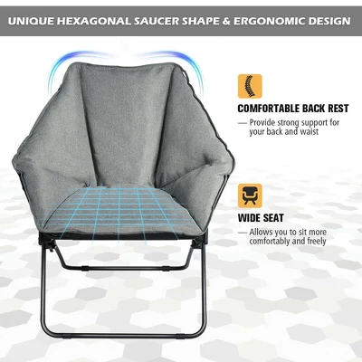Are you looking for a cozy chair for your leisure time? our foldable saucer chair will be perfect for you.made of rust-resistant iron frame, our saucer chair can be used for a long time. 600D Oxford cloth and cotton filler are soft and breathable. Ergonomically designed to effectively support your back and waist, allowing you to have a large sitting area and relax. With a lightweight design, this folding saucer-shaped chair is easy to transport and store in a few small corners without taking up too much space. In addition, this indoor disc chair is suitable many places such as balcony, living room, bedroom, dormitory, office.