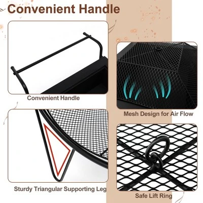 - Safe & Reliable Design: When you burn logs in the fire pit, the spark screen effectively protects you from flying embers. The mesh design on the spark screen is good for air flow. Besides, the round ring allows you to lift the screen safely. And the sturdy steel frame is high-temp resistant for extra security.