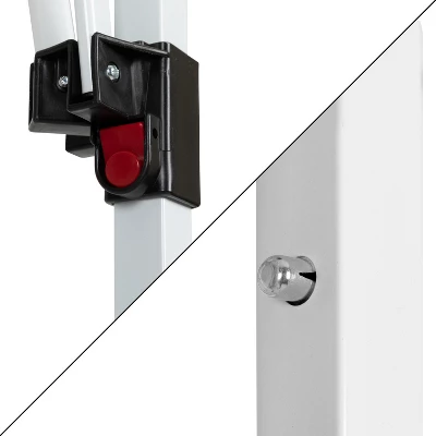 Portable shelters are an excellent way to provide shade during outdoor events and this black all-weather 10′ x 10′ pop up canopy tent will help keep you out of the elements so you can enjoy your time with family and friends. The weather resistant polyester top has reinforced corners to prevent ripping or tearing and is UV coated to resist fading from the sun’s rays. Simply unfold the fabric top, attach to the upper frame with the hook and loop fasteners, extend the bottom legs and pull open for instant protection. Strength and durability abound in this instant canopy. The white powder coated steel frame is rust and corrosion resistant and locks in place with a “pinch free” locking mechanism. The height adjustable frame takes you from the backyard to the beach and everywhere in between. Secure the included weight bags to the bottom legs then fill with sand (not included) to ensure maximum stability. This canopy pop up tent folds up when not in use and has its own wheeled case for easy transport and storage. This quick shade canopy includes the frame, canopy top, stabilizing ground stakes, weight bags and a wheeled storage case. Assembly takes less than 10 minutes and does not require tools. Take this portable shade canopy on camping trips, tailgating, the kids soccer games or for get togethers on your patio or in the yard. This party canopy tent will look great season after season. Additional Features: Height Adjustable Powder Coated Frame is weather and rust resistant, Assembles in 10 Minutes or Less; Includes Ground Stakes to anchor the structure; String Size (8): 118″, Seating Capacity with 8′ Folding Table: 10; Standing Capacity: up to 20, All Occasion Pop Up Party Canopy Tent ideal for family reunions, neighborhood block parties, tailgating, camping or as shade on your deck or patio