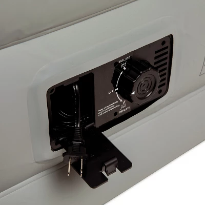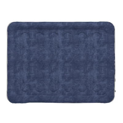 Always be ready for out of town company or visits from the grandchildren and have a sleep space for party guests who shouldn’t be driving when you purchase this queen size air mattress with built in pump. Everyone likes their sleep surface a little different and this queen size air mattress allows you to customize the firmness to your desired level. Add or remove air with the inflate/deflate switch on the internal built in pump to get your perfect fit. Not only is our best air mattress with built in pump customizable, the navy blue upholstered flocked top over the gray base is pleasing to the eye and doesn’t require bedsheets so there is no added expense. Quality is always essential when making a purchase and this blow up bed will definitely be an asset. Made from 100% PVC, our queen air bed with flocked top is puncture resistant and will hold up to movement around the home. This inflatable mattress folds for storage and easy transport and features integrated cord storage and a carrying case making it an excellent addition to your campsite tent or RV. This queen air mattress will hold up to 650 lbs. weight capacity to accommodate most users and inflates or deflates in about 3 minutes for quick use. The internal pump is UL certified for safety. Spot clean with damp cloth to remove any soiling. Own this portable air mattress and allow your friends or family to sleep over without worrying about wear on your couch cushions or visitors being uncomfortable on the floor. Additional Features: Folds into Included Carry Case for ease of transport, Internal UL Certified Electric Pump for no hassle inflation/deflation, Spot Clean with a Damp Cloth to remove soil or spills, Portable blow up bed ideal for overnight guests, camping trips or living room sleepovers with the grandchildren