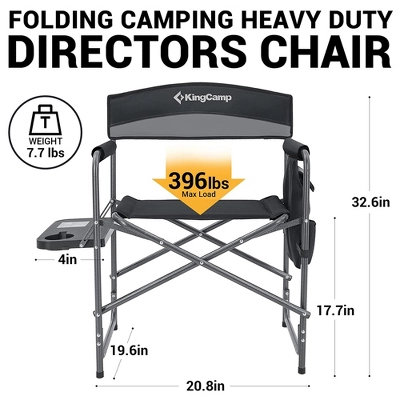 Whether you’re going on an outdoor camping adventure or sitting at your favorite sporting event, the 2 Padded Folding Chairs from KingCamp will be an ideal place to relax your feet. Designed for maximum comfort, these director chairs feature double-layer fabrics with padding covering the armrests and backrest to keep you well-suited throughout your camping journey, while the solid armrests also help you get in and out of the chair with ease. Constructed with a sturdy alloy steel frame and a horizontal bar structure combined with 4 foot covers, these chairs offer increased durability and secure stability while still being light in weight. These specific chairs are made to support up to 400 pounds. Including a side table with an integrated cupholder and a removable side storage pocket, you’ll conveniently have everything you need within reach for a perfect outdoor day. When not in use, fold the chair and simply transport them with the built-in carry strap. Enjoy your camping trips, outdoor parties, or fishing with the 2 KingCamp Padded Folding Chairs.
