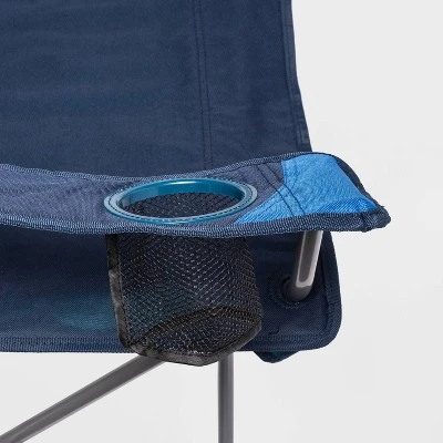 Enjoy the sunny outdoors in this Quad Camp Chair from Embark™. Supported on a metal frame, this outdoor chair features a fabric seat and back for comfortable sitting and relaxing. Designed with armrests, it features a built-in mesh cup holder for convenience. Strong yet lightweight, this chair can be easily folded and carried anywhere — from your backyard to the beach or your boat, as well as out camping or tailgating — making it a great pick for the outdoors. Best of all, it comes with a carrying bag with shoulder strap for effortless transporting.