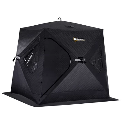 - Quality Materials: The three-layer 300D high-density wind and water resistant oxford fabric of this ice fishing shanty keeps you protected, while offering durable materials. Stay dry, while in a tent that lasts you longer periods of time with its sturdiness.