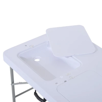 - Picnic & Fish Cleaning Table with Sink: This portable camping table offers foldable legs, a lightweight build, and a convertible two-sink table design, making it easy to use for hand washing, cleaning dishes, fish, food prep, and sitting down to eat.