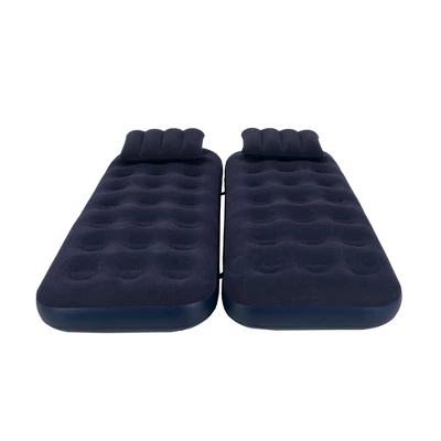 This 3 in 1 air bed functions as single bed, double bed and high-rise bedPerfect for camping, relaxing at home or for sleepoversSturdy vinyl coil beam construction Waterproof flocked top prevents sheets from slipping, provides soft velvety feel and adds to comfortComes with 2 pillows Super safety valve helps rapid inflation and deflationIncludes repair patchAge: 14+Dimensions: 9″H x 29”W x 75”L Material(s): heavy duty vinyl