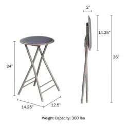 Trademark Home Heavy-Duty 24-Inch Folding Stools With Padded Seats, Gray, Set Of 2