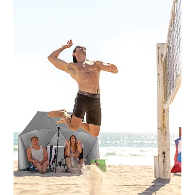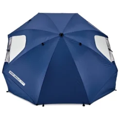 The 8 foot Sport-Brella Ultra is the easiest maximum protection shelter to keep you protected from the sun, wind, and rain. It is lined with a UPF 50+ undercoating that blocks harmful UVA and UVB rays. Durable center pole has a built-in auger tip to easily anchor into most surfaces and adjusts for maximum shade. Zippered windows allow air to flow through and prevent umbrella from blowing away. Reinforced carry bag and ground stakes included.