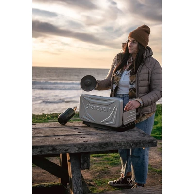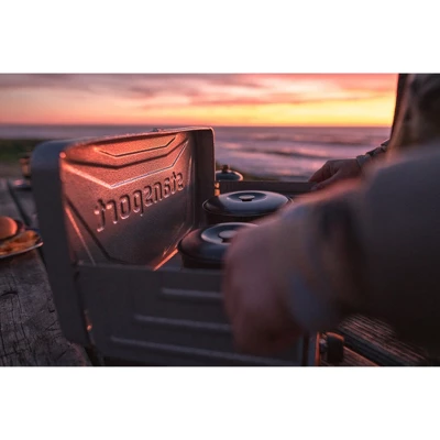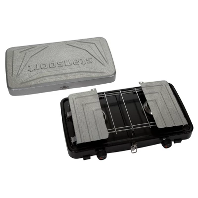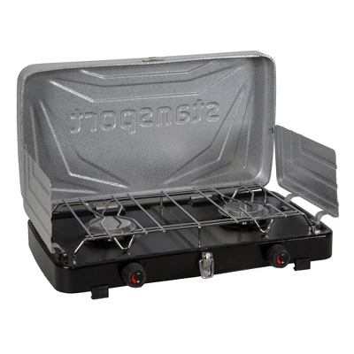 With our two-burner propane stove, you’ll never have to choose between frying bacon and making coffee again! Two 10,000 B.T.U. stainless steel burners, fueled by 16.4 oz disposable propane cylinders (not included) provide plenty of cooking power. We’ve attended to all the details – like a detachable lid, windscreens, and a heavy-duty removable steel grate. The entire stove is coated with a baked-on enamel finish, for a lifetime of outdoor cooking pleasure!